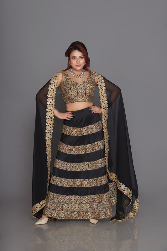 Black and Gold zari embroidered lehenga set