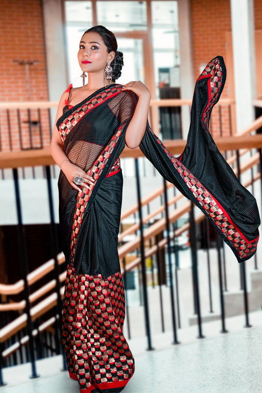 Black net embroidered designer saree